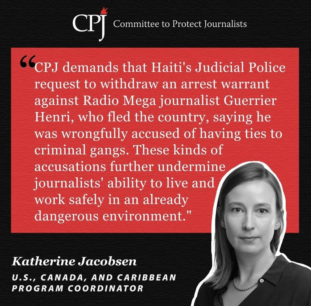 Le Committee to Protect Journalists (CPJ) a réagi fermement à la récente décision de la Direction Centrale de la Police Judiciaire (DCPJ) de publier un avis de recherche contre le journaliste haïtien Guerrier Henri. L’organisation internationale a qualifié cette mesure d’« illégale » et appelle les autorités à y mettre fin immédiatement.