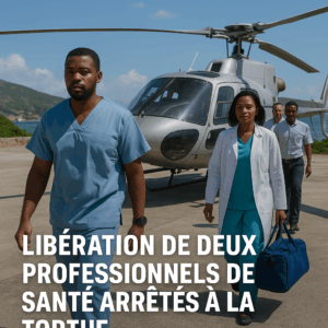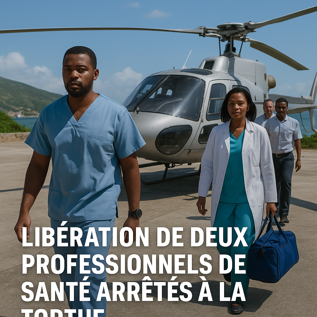 Port-de-Paix, 27 juillet 2025 – L’orthopédiste Isaac Archelus et l’anesthésiste Nerline Joachim, arrêtés le 13 juillet dernier par des agents de la Brigade de Lutte contre le Trafic de Stupéfiants (BLTS) à La Tortue, ont été libérés ce dimanche 27 juillet. Ils ont été transportés par hélicoptère vers Port-de-Paix, une semaine après leur arrestation.